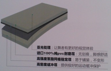進(jìn)口舞蹈地膠的材質(zhì)主要分為:面層、礦物纖維層及發(fā)泡層。